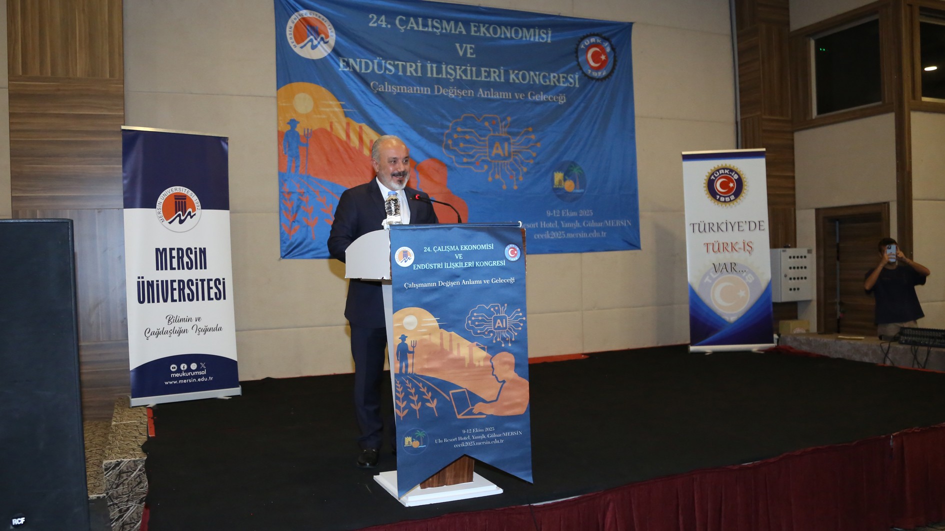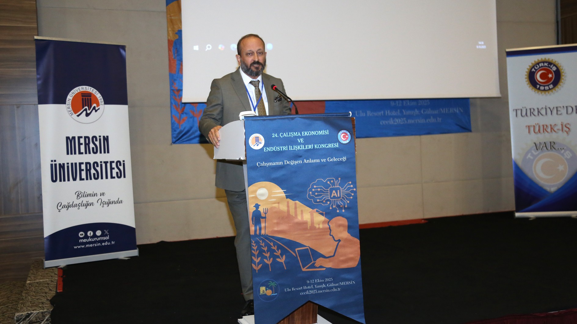 Üniversitemiz Çalışma Ekonomisi ve Endüstri İlişkileri Bölümü Başkanı Prof. Dr. Hasan Ejder Temiz konuşmasında “Böylesine güzide bir topluluğu Mersin’in Gülnar ilçesinde, bu özel ortamda bir araya getirmiş olmanın heyecanını ve mutluluğunu yaşıyoruz. Bu kongrenin gerçekleşmesinde katkı sunan tüm kurumlara, kuruluşlara ve bireysel destekçilere teşekkürlerimi sunuyorum. Bu yıl kongremizin ana teması “Çalışmanın Değişen Anlamı ve Geleceği” olarak belirlendi. Zira içinde bulunduğumuz çağ, çalışma hayatının yalnızca yapısal yönlerini değil, aynı zamanda anlam dünyasını da derinden dönüştürüyor. Dijitalleşme, yapay zekâ, esnek çalışma modelleri, platform ekonomileri ve küresel belirsizlikler gibi dinamikler, çalışma biçimlerini olduğu kadar çalışmanın birey ve toplum nezdindeki değerini de yeniden şekillendiriyor. Akademik camia, politika yapıcılar ve sosyal taraflar olarak bu dönüşümü anlamak, doğru okumak ve yönlendirmek hepimizin ortak sorumluluğudur.” dedi.