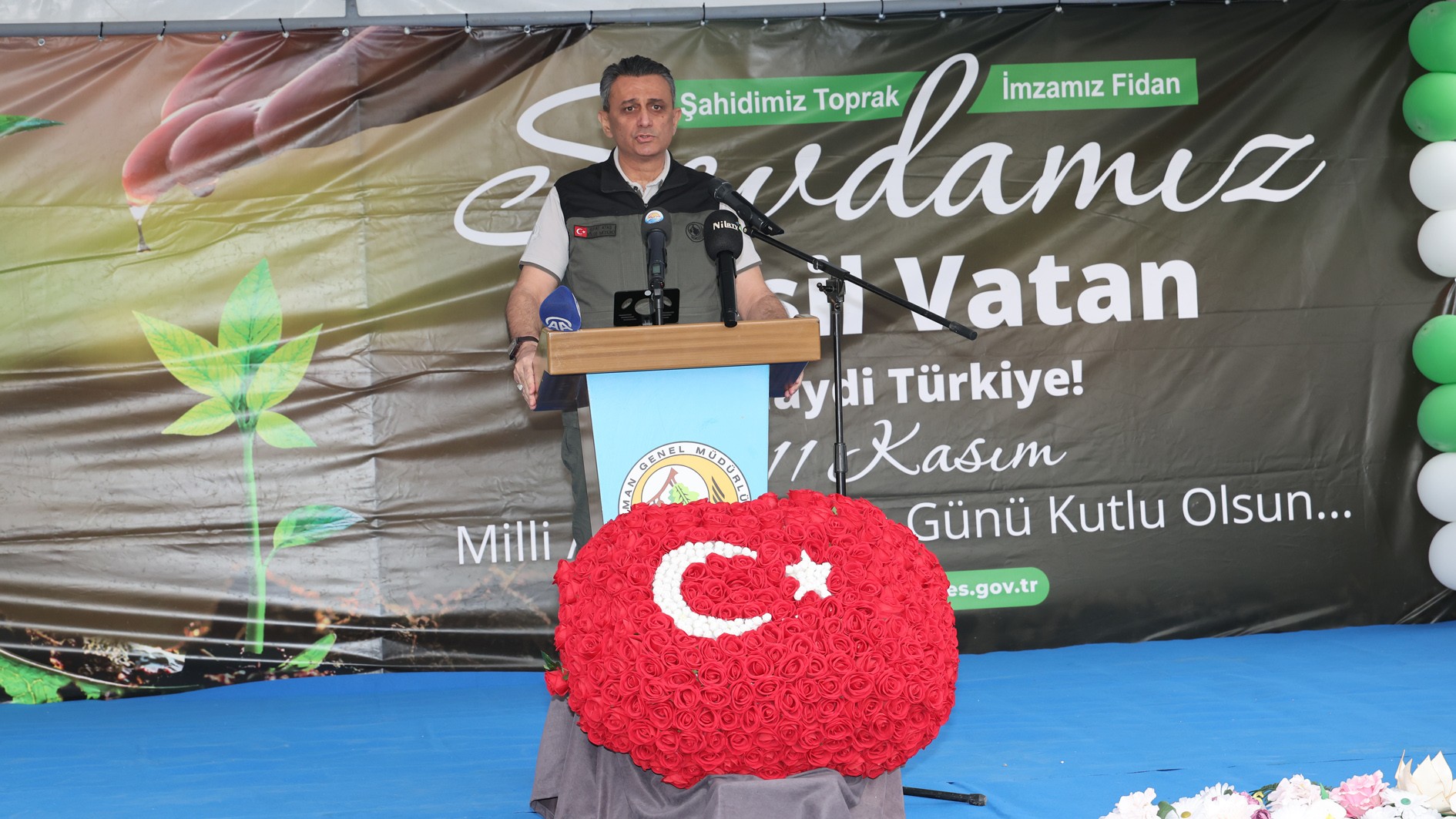 Mersin Valisi Atilla Toros konuşmasında, 81 ilde eş zamanlı olarak gerçekleştirilen fidan dikim törenine katılan herkesi selamlayarak, “Bugün sadece fidan dikmiyoruz; toprağa imzamızı, vatana umudumuzu bırakıyoruz. Gökyüzüne uzanan her bir fidanda doğanın canına can katıyor, geleceğimize kalıcı bir miras bırakıyoruz. Her yıl milyonlarca fidanın toprakla buluştuğu bu anlamlı gün, geleceğe dair yeşeren umutların sembolü olmuştur. Bu seferberlik sayesinde Türkiye, orman varlığını artırabilen nadir ülkelerden biri olmuştur. Bu alanda bugün Avrupa’da 1’inci, dünyada ise 4’üncü sıradayız. Bu başarıyı Mersin’de de güçlü bir şekilde sürdürüyoruz. Orman Bölge Müdürlüğümüz son 20 yılda 461 milyon fidanı toprakla buluşturdu. Bu dikim sezonunda 3 milyon 150 bin fidan toprakla buluşacak. Bu yıl Milli Ağaçlandırma Günü kapsamında 10 ilçemizde, 10 ayrı noktada toplam 94 bin fidanı toprakla buluşturuyoruz.” dedi.