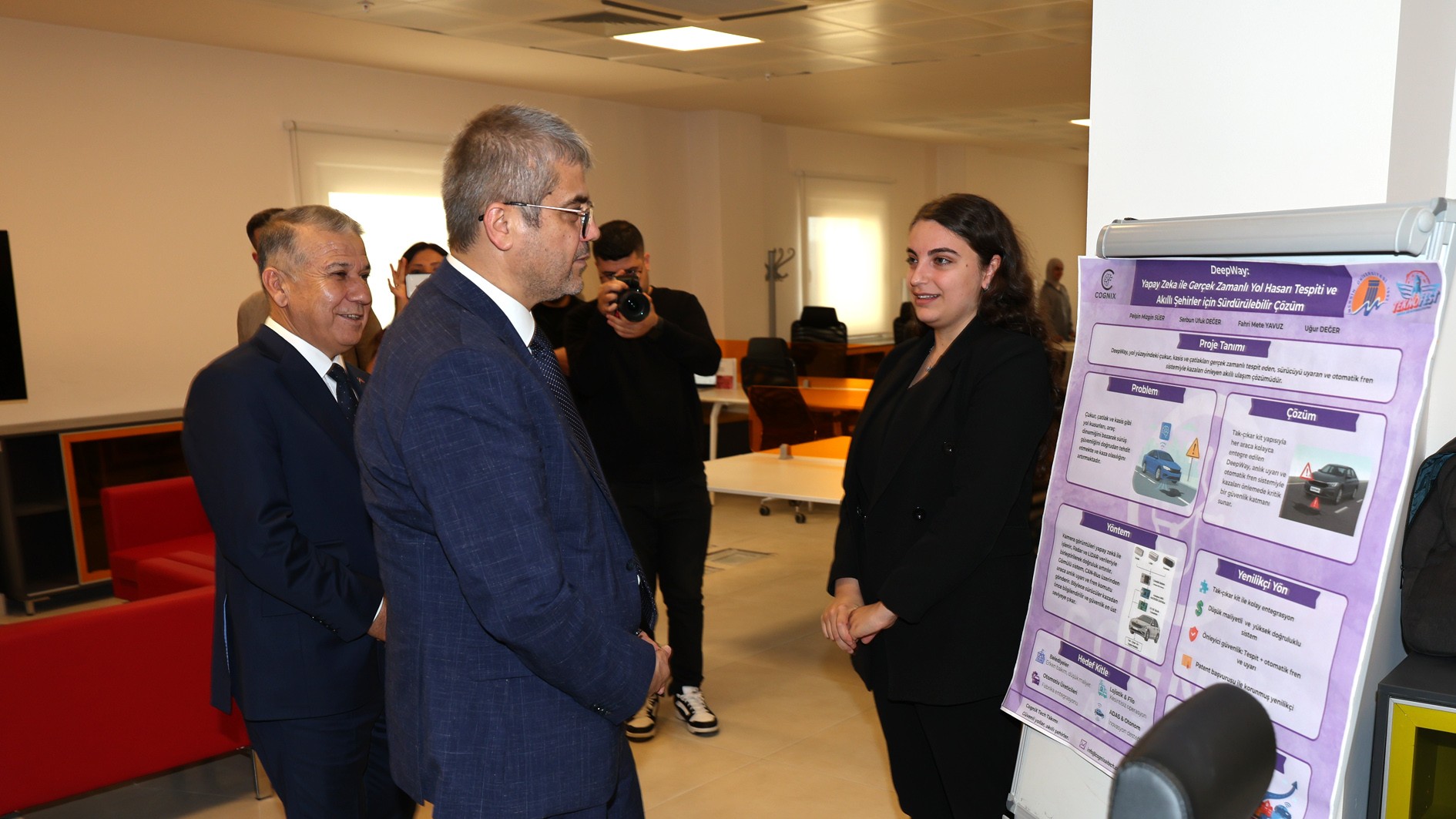 Konferansın ardından ilk olarak Üniversitemiz Girişim Limanı ziyaret edildi. Burada Girişim Limanı Müdürü Dr. Öğr. Üyesi Gürbüz Çomak tarafından karşılanan TÜBİTAK Başkanı Prof. Dr. Orhan Aydın, Rektörümüz Prof. Dr. Erol Yaşar ve Rektör Yardımcımız Prof. Dr. Mehmet Çağrı Çetin; merkezdeki genç girişimcilerle tanışarak sohbet etti ve projeleri hakkında bilgi aldı.