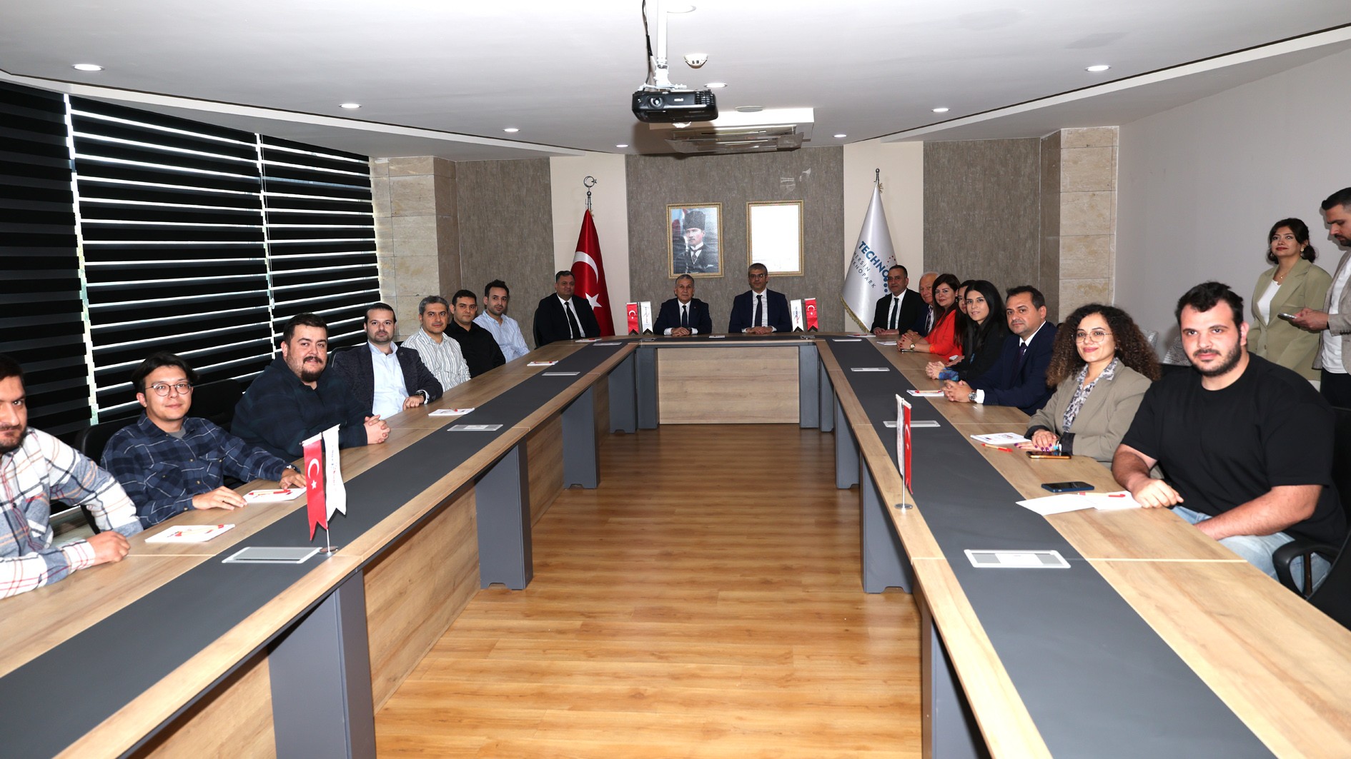 Daha sonra Teknopark’a geçen heyeti, Teknopark Müdürü Mehmet İlbaş karşıladı. Teknopark bünyesindeki firmalarla bir toplantı gerçekleştiren heyet, ardından burada faaliyet gösteren firmaları ziyaret ederek yetkililerden bilgi aldı.